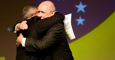 Então eu trouxe para ser  vice-presidente uma pessoa que considero ser o melhor vice-presidente do mundo, um homem do mundo empresarial, que tem hoje a maior empresa têxtil no mundo. Ele é  vice-presidente e ajudou a quebrar tabus e preconceitos no mundo empresarial. Este foi um passo importante que só depois das eleições alguns setores empresariais começaram a compreender, e aqui eu quero dizer publicamente, que Gordon Brown era alguém muito importante, uma pessoa muito importante, porque através de todo esse tempo, ele confiava no Brasil e sempre falou bem do meu governo. E o diretor-gerente do FMI, eu me lembro de uma reunião em Paris, em 2003, quando eu estava conversando com [Horst] Köhler sobre o Brasil, sobre a minha vida. Isso foi quando eu tinha sido pouco menos de um mês no cargo. E, de repente, estávamos abraçados e nós estávamos a chorar.